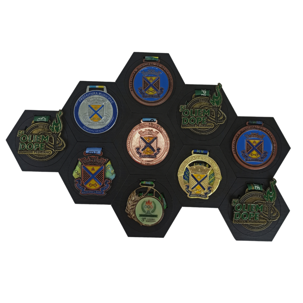 Kit 10 Porta Medalhas de MDF Hexagonal Preto para Decoração de Parede - Kit com 10 Unidades