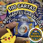 Lote 100 Cartas Pokémon Originais Sem Repetidas Com 10 Brilhantes Cartinhas Colecionáveis