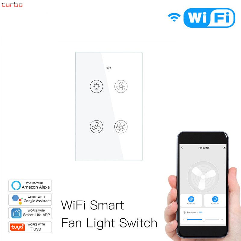 Tuya Smatrul Toque Wifi Teto Ventilador Interruptor De Luz Eua 100-240VVida Inteligente Temporizador Remoto Controle De Velocidade De Vidro Da Parede Para Alexa Inicial Do Google