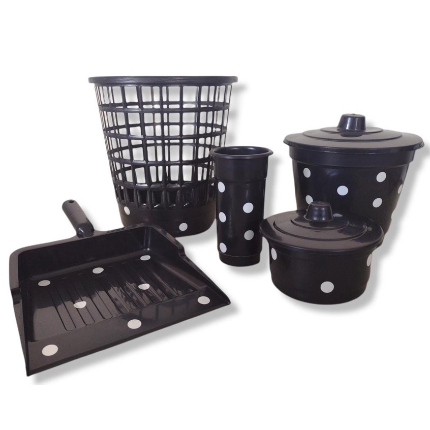 Kit Limpeza 5 Peças Jogo Pia Com Pá Lixo E Cesto Telado Poá Multiuso