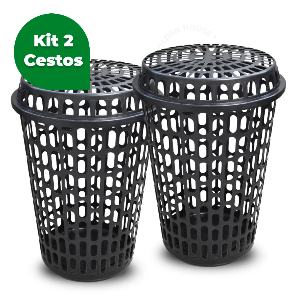 Kit 2 Cesto De Roupas Sujas Telado 60 Litros Com Tamppa Preto Cor:Preto