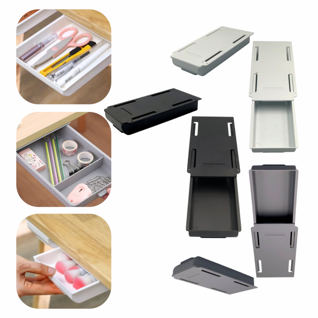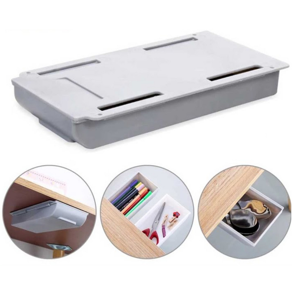 Gaveta Organizadora Adesiva Secreta Oculta Multiuso Para Mesa Escritório Escondida Invisivel Pequena Média Grande Cinza Branca Plástica