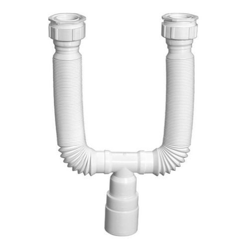 Sifão Duplo Flexível Sanfonado Branco PVC Tanque Pia Lavatório Cozinha Lavanderia Tubo Extensível