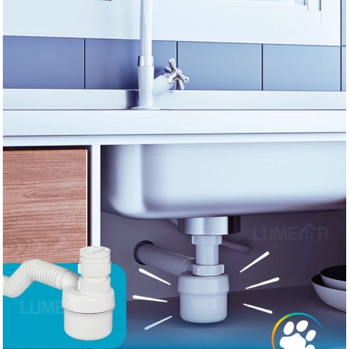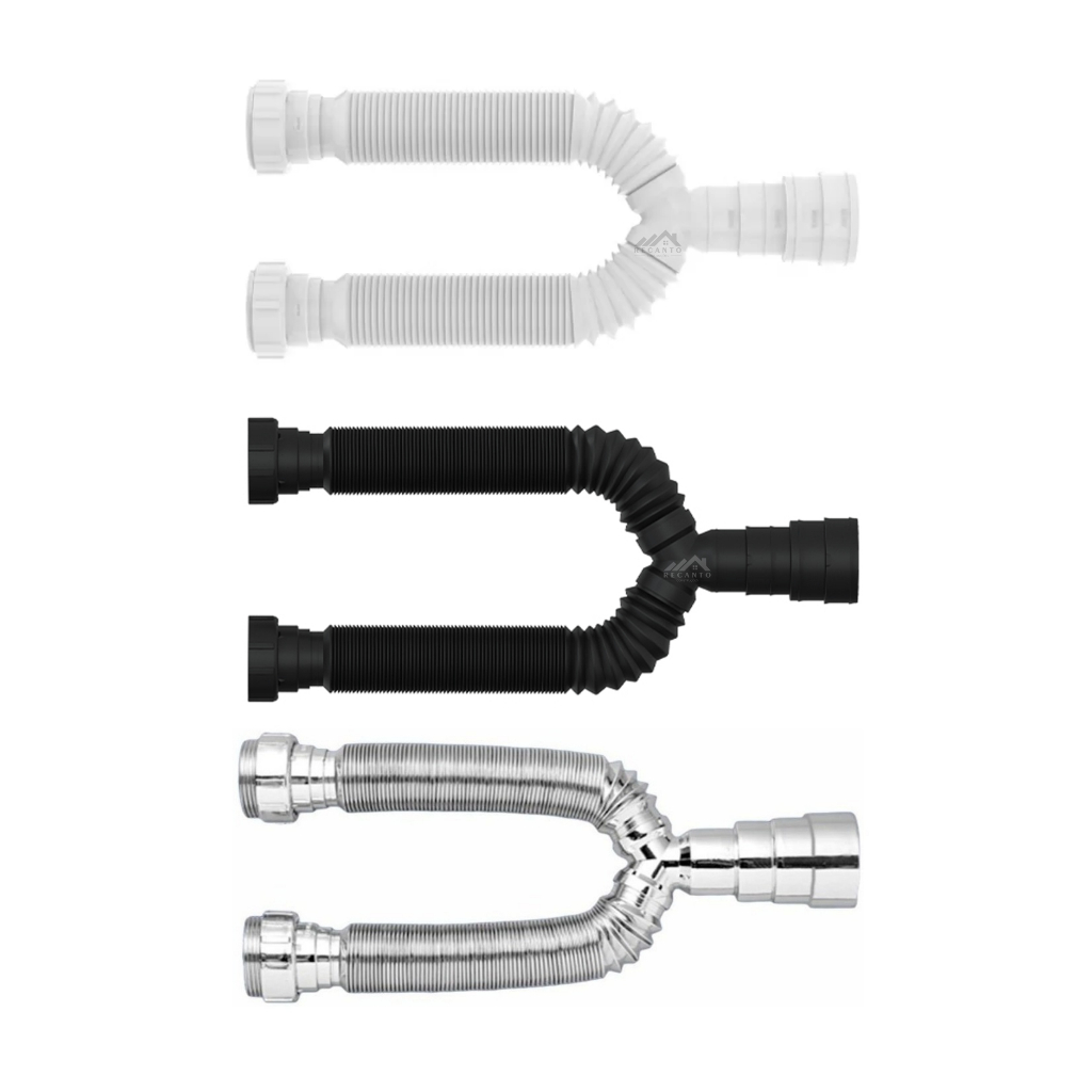 Sifão Duplo Tubo Extensível Sanfonado Branco Cromado ou Preto Pia Tanque – Plasbohn