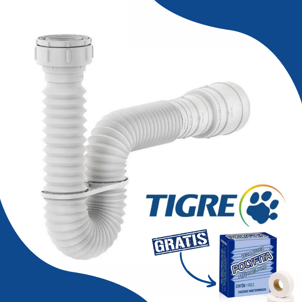 Sifão Universal Ajustável Tigre Multiuso Flexível Sifao Sanfonado Extensível Para Pia de Cozinha, Lavatório ou Tanque BR