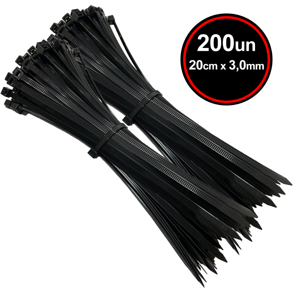 Kit 200 Abraçadeiras Nylon Presilha 200 X 3.0mm Fita Cinta Plástica