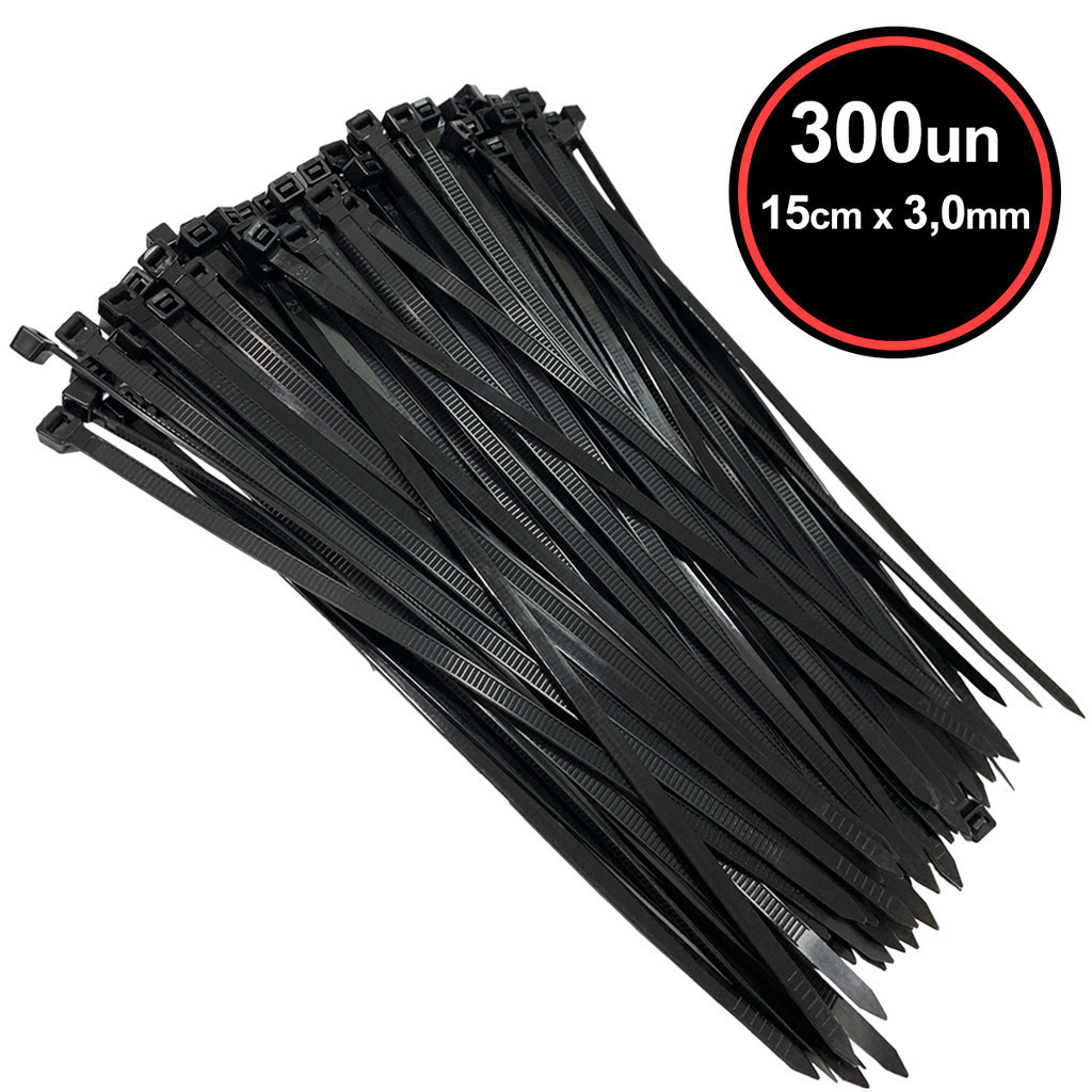Kit 300 Abraçadeiras Nylon Presilha 150 X 3.0mm Fita Cinta Plástica