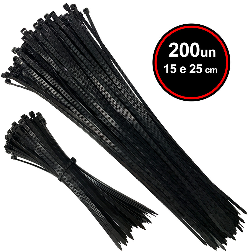 Kit 200 Abraçadeiras Nylon Presilha 15 e 25 cm Lacre Fita Cinta