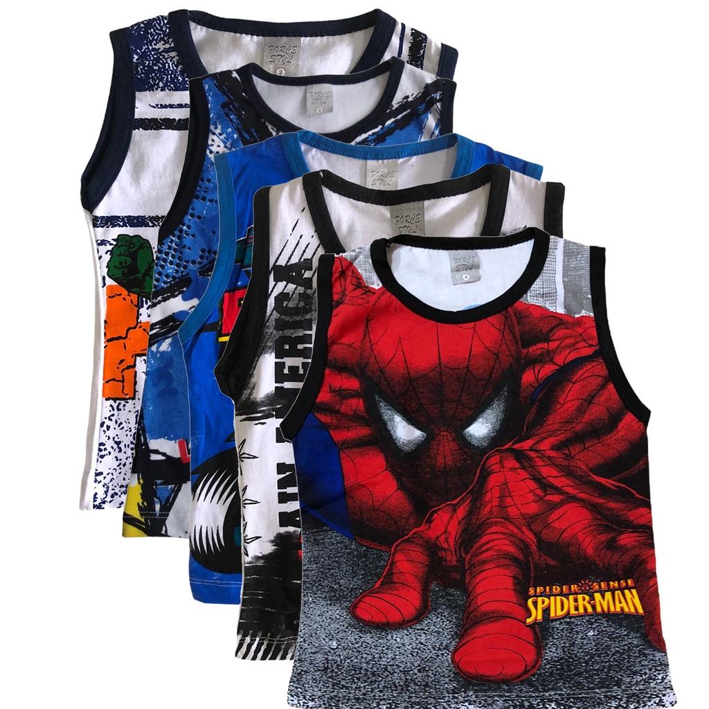 Kit 5 Camiseta Infantil Regata Machão Roupa Menino Camisa De Personagens Variados Hulk, Homem Aranha, Batman, Capitão América, Sonic, Homem de Ferro