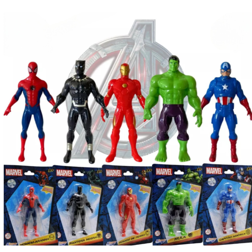 Kit Bonecos Marvel Miniatura Super Heróis Coleção Hulk - Capitão América - Pantera Negra - Homem De Ferro - Homem Aranha