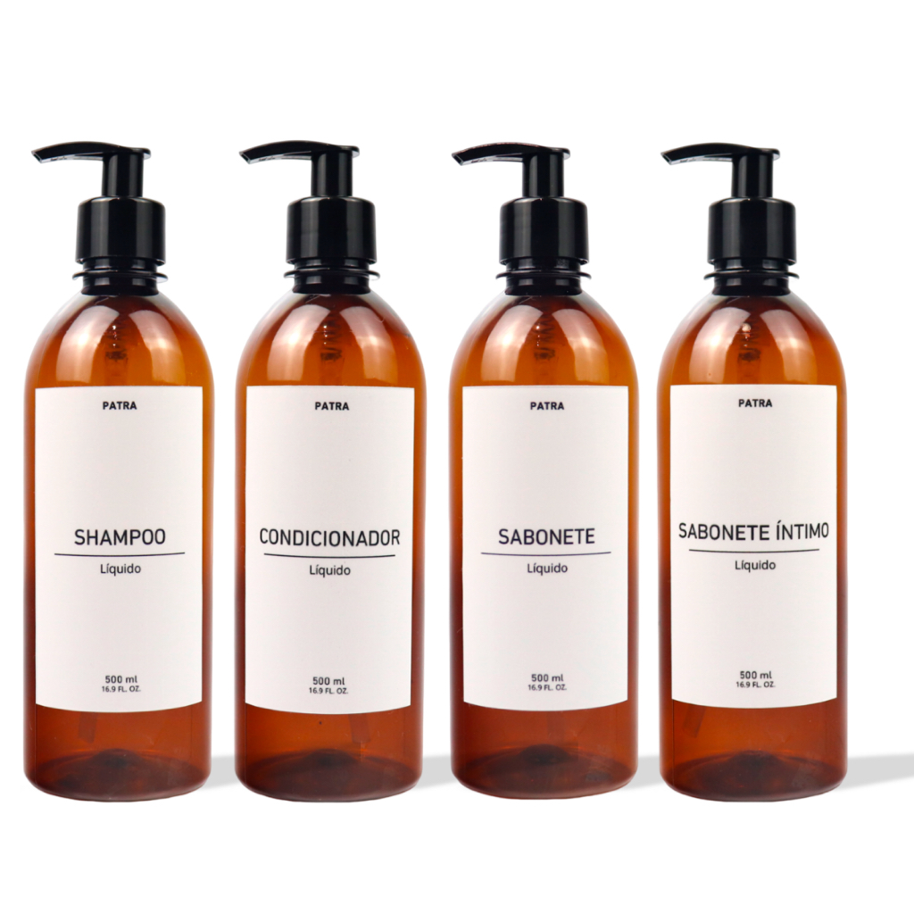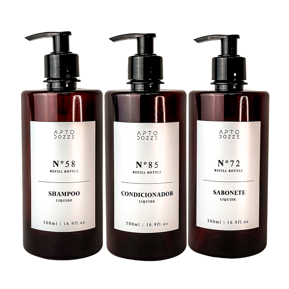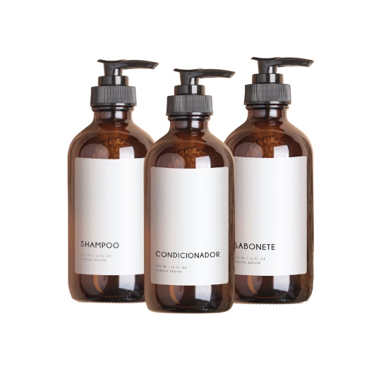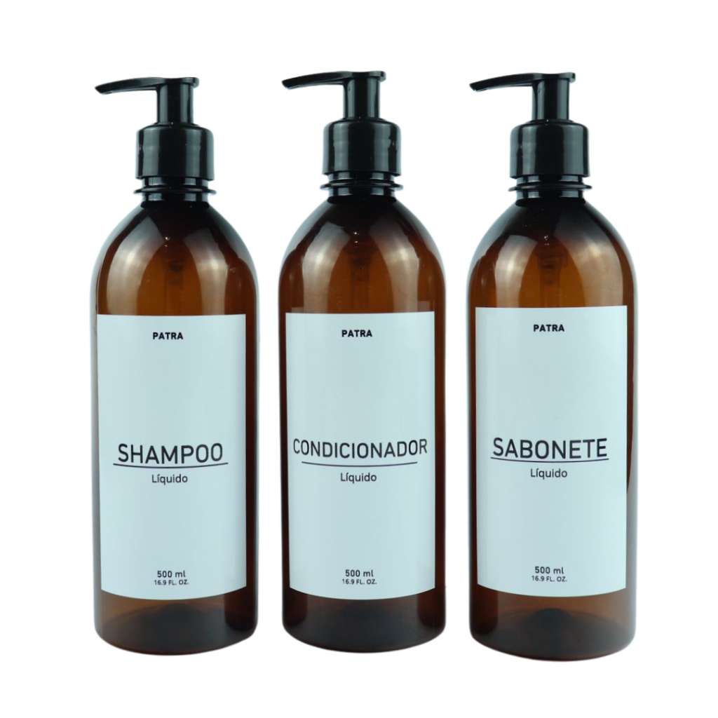 Frasco para shampoo e condicionador 500ml ambar kit 3pçs para banheiro