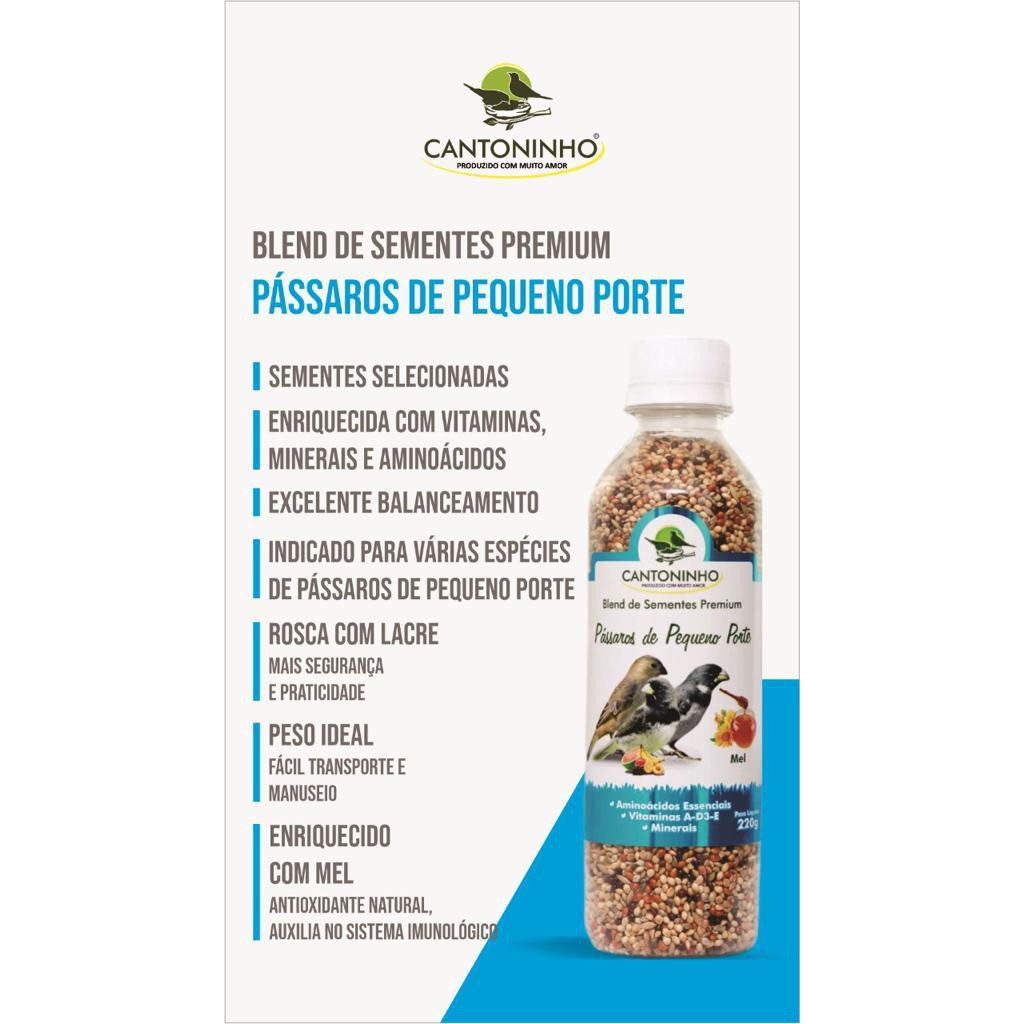 Rações Cantoninho Blend de sementes premium para pássaros de pequeno porte- Oléo de Bacalhau - 220g unid