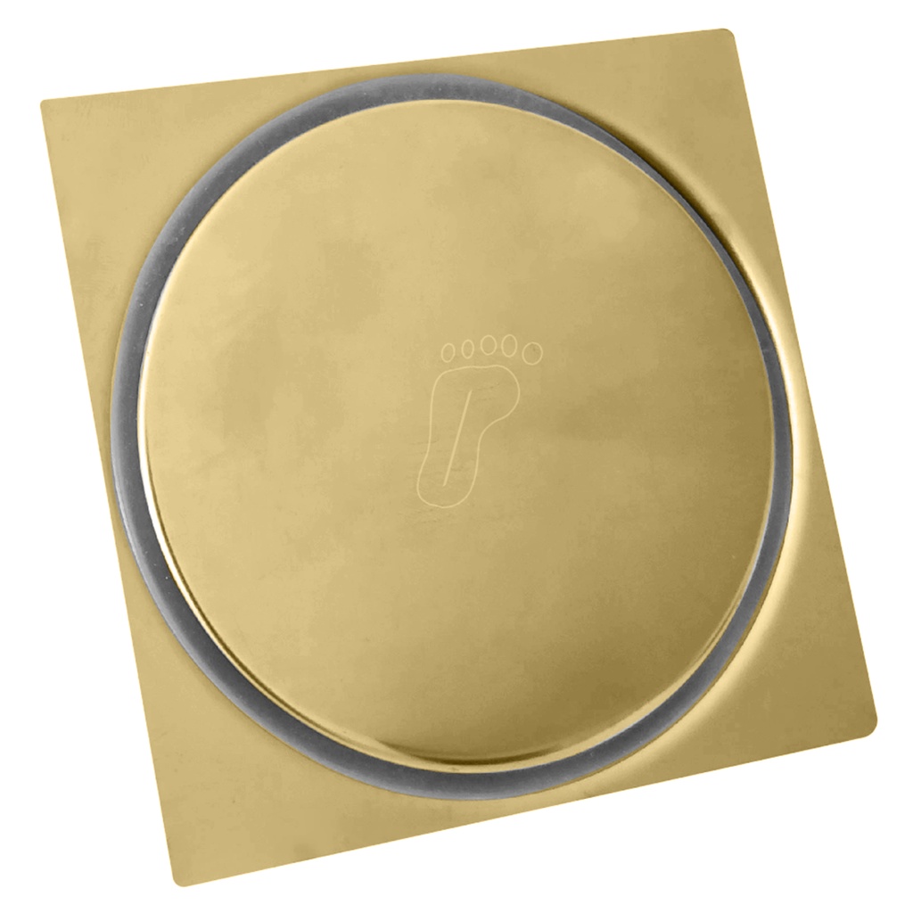 Ralo Click Dourado 10x10 Ralo Inteligente Quadrado Aço Inox 10 cm para Banheiro Lavabo Escoamento Lavatorio Tampa Dourada Gold Brilhoso Luxo