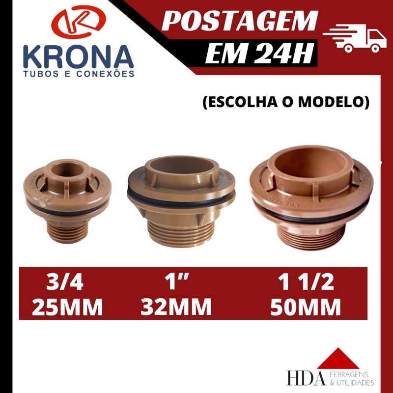 Adaptador Flange 25 mm 32 mm ou 50 mm Para Caixa D’ Água ou Cisterna (Marrom) - KRONA