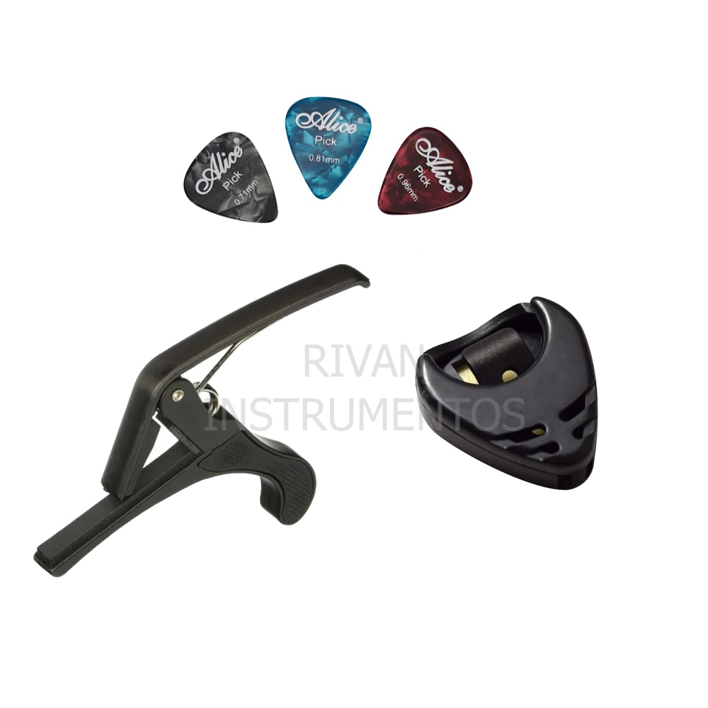 Kit Capotraste Braçadeira + Porta Palhetas +3 Palhetas