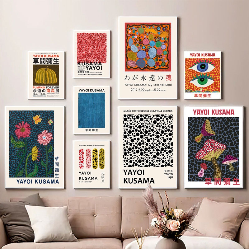 Yayoi Kusama Cartazes E Cópias De Exposição Abstrato Pintura Da Arte Lona Imagem Abstrata Moderna Museum Casa Decoração Parede