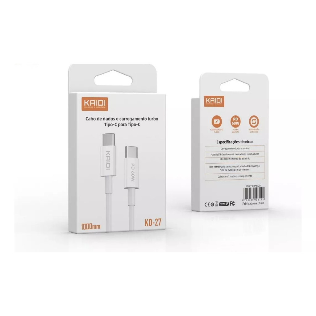 Cabo de Dados e Carregamento Turbo Tipo-C para Tipo-C KAIDI KD-27 Potência Máxima: 60w