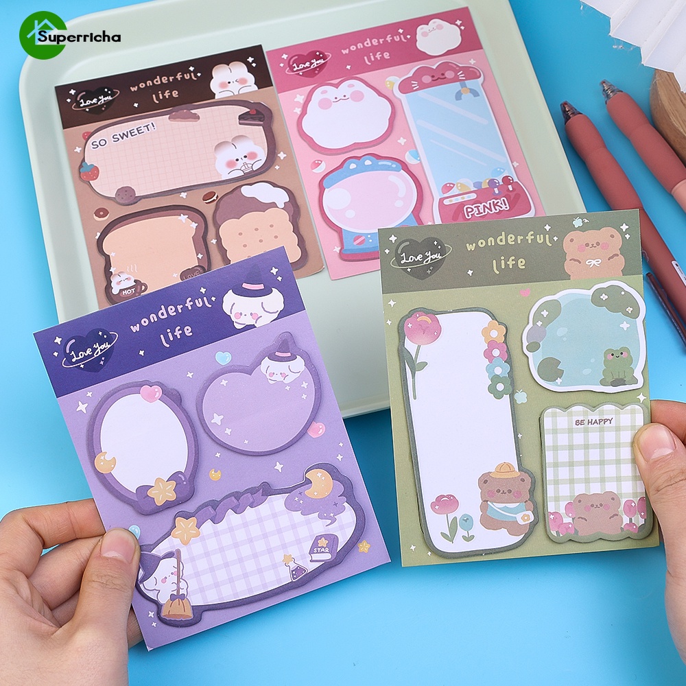 Desenho Animado Tipo Combinado Nota Adesiva-20-60 Folhas/Livro Fofo Padrão Animal Post it-Mark Index N-Times Stickers-Memo De Mensagem De Viscosidade Forte Colorida-Papelaria De Escritório