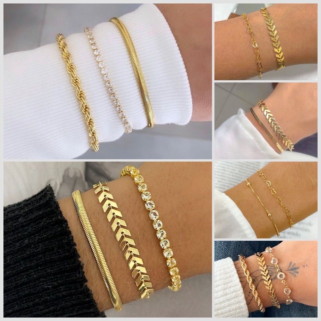 Conjunto De Pulseira Feminina-Cordão Bahia E Corrente Veneziana Banhada A Prata 925 Joias Minimalistas