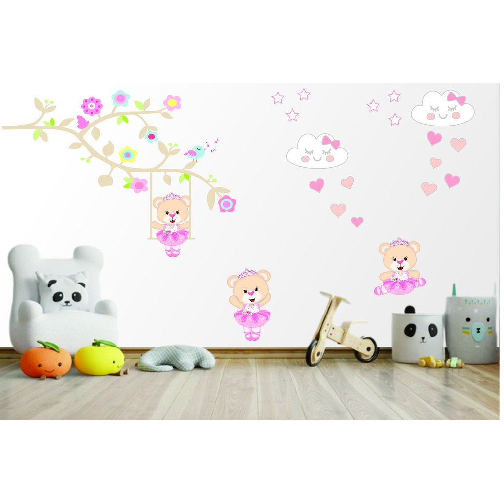 Adesivo de Parede Infantil Ursinha Bailarina e Árvore