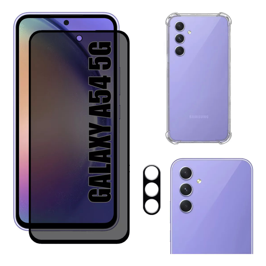 KIT Para Samsung Galaxy A54 | Película de Privacidade 3D - Capa Capinha Anti Impacto - Película da Câmera 3D