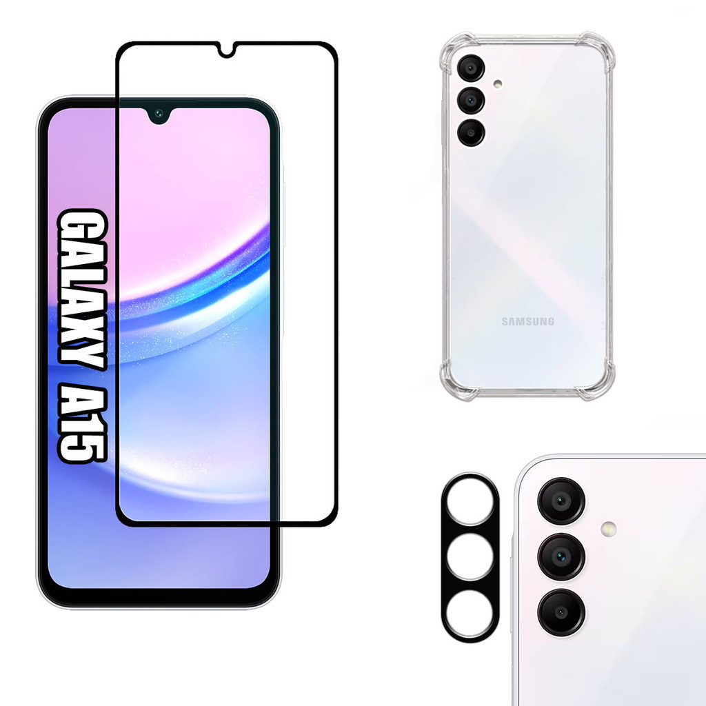 KIT Para Samsung Galaxy A15 | Película de Vidro 3D - Capa Anti Impacto - Película da Câmera 3D