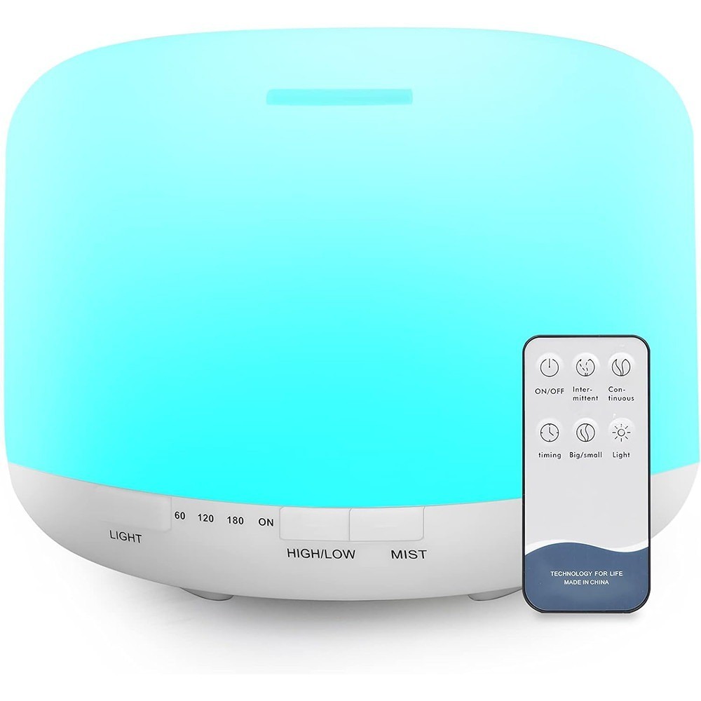 500ML Difusor De Óleos Essenciais, Humidificador Ultrassónico Sem BPA Com Controlo Remoto E 7 Diferentes Luzes Em Mudança - Desligamento Automático Sem Água
