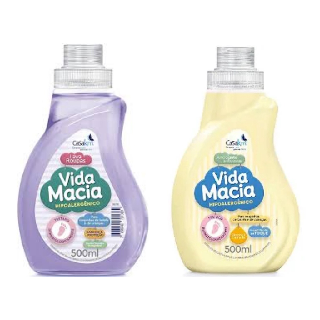 Kit 1 Lava roupas Vida macia 500ml + 1 Amaciante Vida macia Camomila 500ml