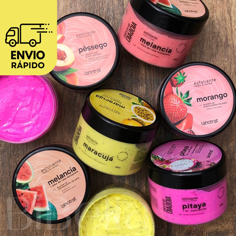 Esfoliante Corporal e Facial Cheiro de Fruta Labotrat 300g ou 150g - Esfoliante corpo e rosto - maracujá - melancia - morango - pitaya - pêssego