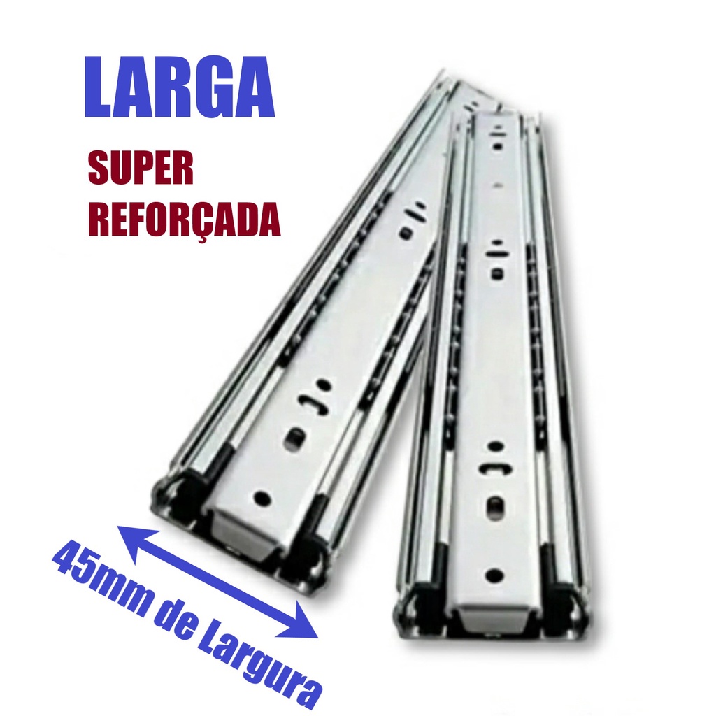 Corrediça de Gaveta Trilho Telescópico KIT c/ 03 (PARES) LARGA REFORÇADA 45mm Largura - 25CM 30CM 35CM 40CM 45CM 50CM