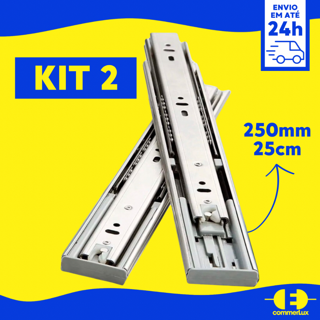 Kit 2 Corrediça Gaveta Trilho Telescópico 25cm 2 Pares Suporta até 20kg Corrediça Zincada