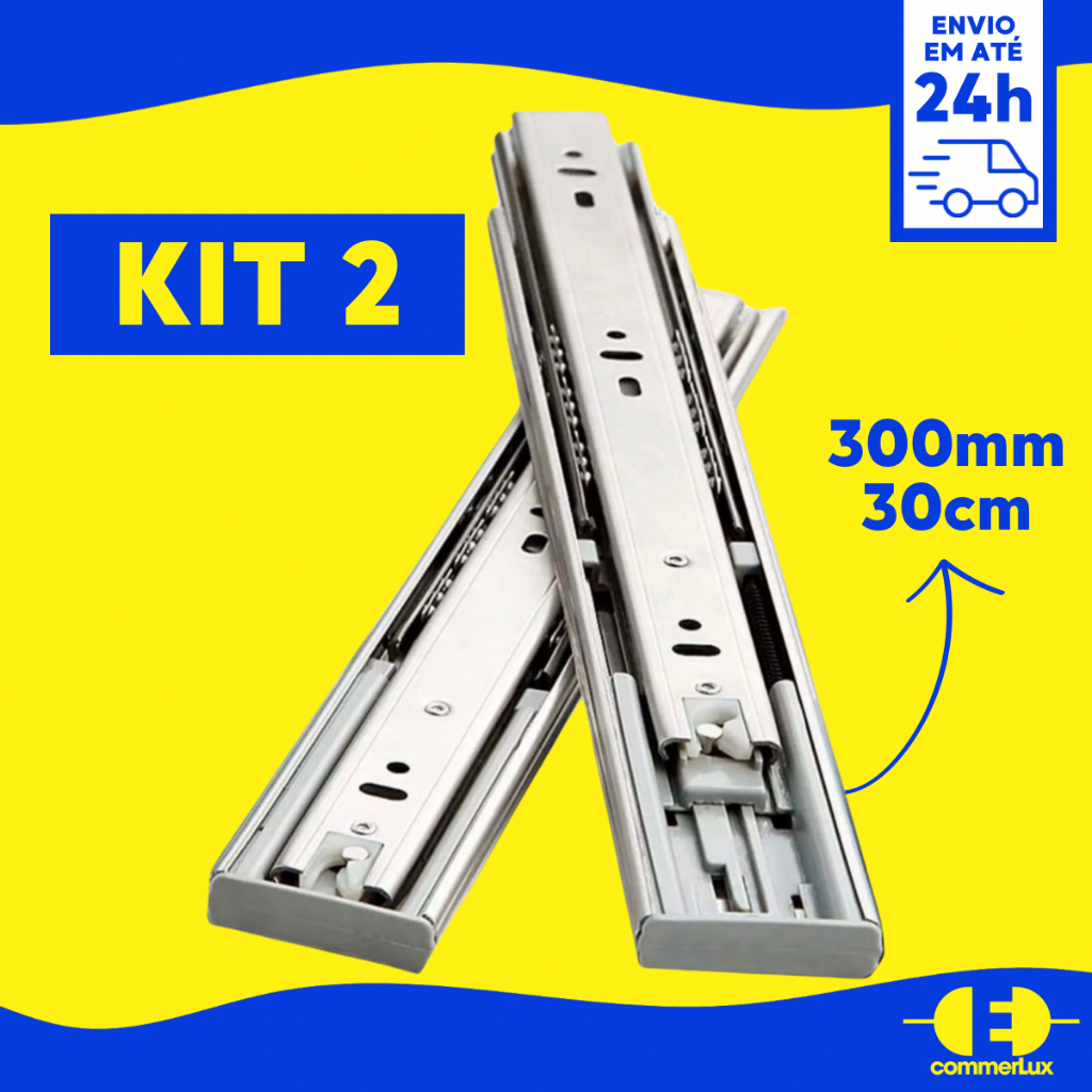 Kit 2 Corrediça Gaveta Trilho Telescópico 30cm 2 Pares 20kg