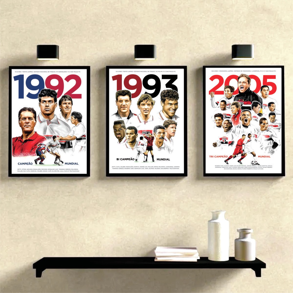 Kit 3 Quadros São Paulo Futebol Clube Tri Campeão Mundial