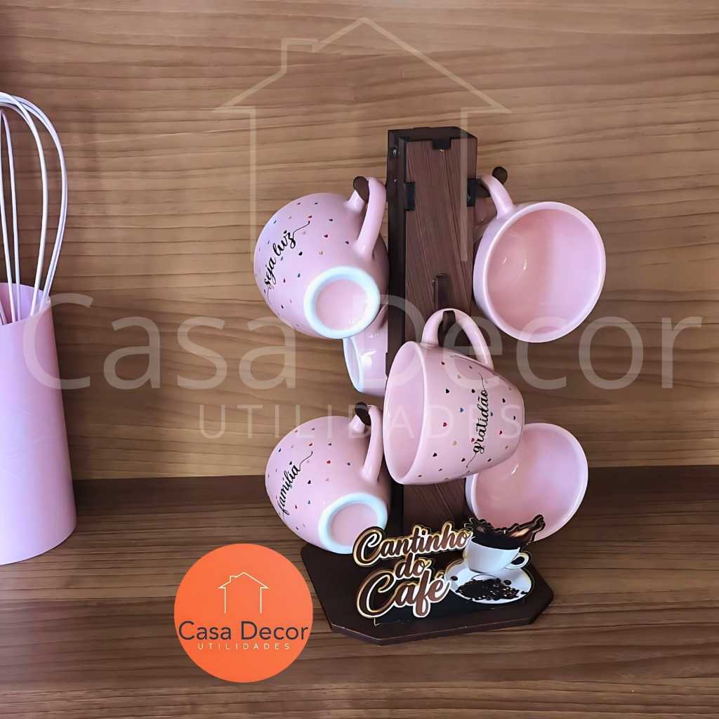 Jogo 6 Xícaras Café Chá Rosa Porcelana Com Suporte Cantinho do Café