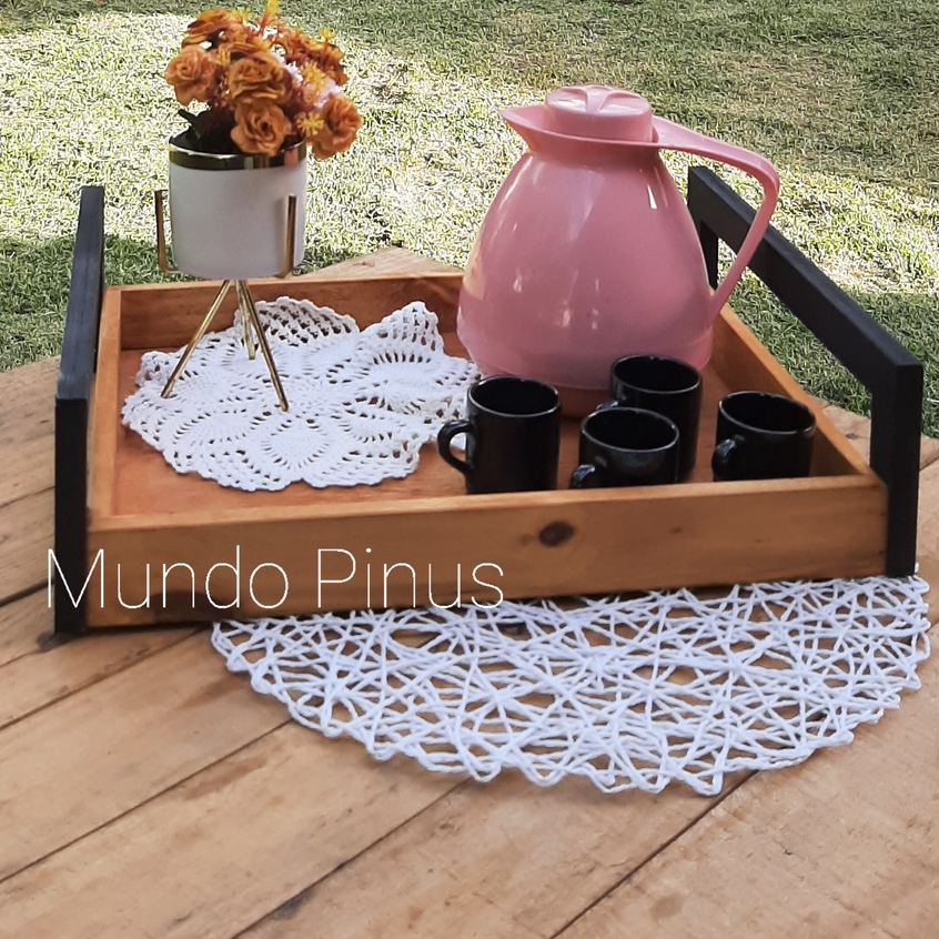 Bandeja Cantinho do Café Pinus com alça em madeira