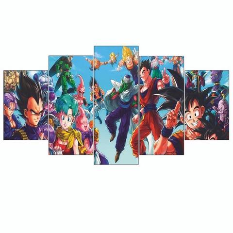 Quadro Mosaico P/ Sala Quarto Dragon BallZ Personagens Anime Painel Decorativo 5 Pçs MDF