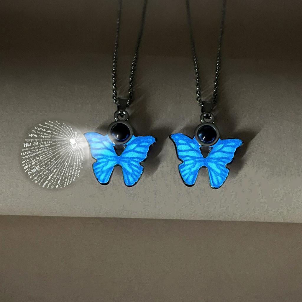 Pingente Borboleta de Projeção Luminosa 2 Itens Uso de 100 Idiomas Diga Eu Te Amo Colar de Casal
