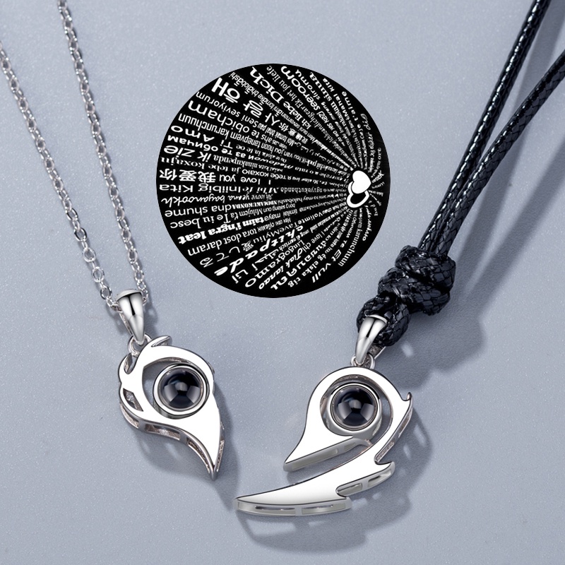 2 Pcs Colar Magnético De Casal/100 Idiomas Pingente De Coração I Lover Para Jóias Do Dia Dos Namorados Mulher