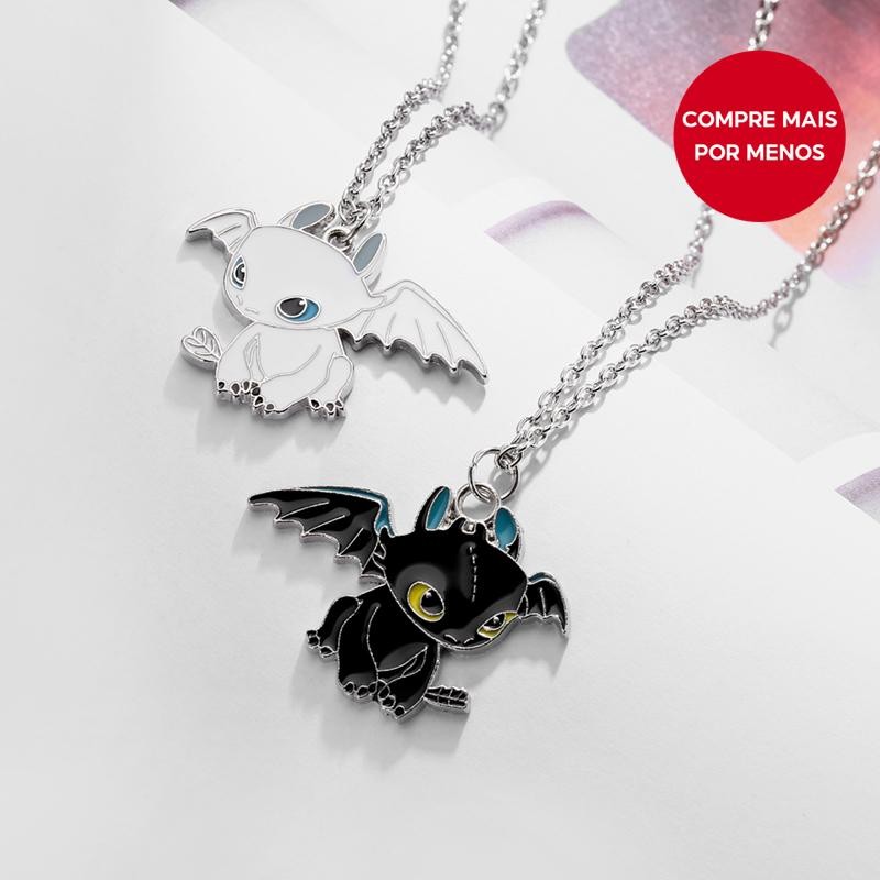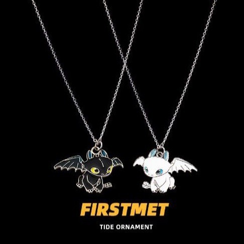 Conjunto De Colar De Casal 2 Peças Preto Branco Pingente De Dragão Voador Joia Exclusiva Presente