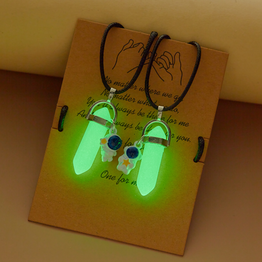 2pcs Colar De Casal De Moda Hexágono Brilhante No Escuro Pingente De Amor Fivela Magnética De Couro Corda De Astronauta Luminoso