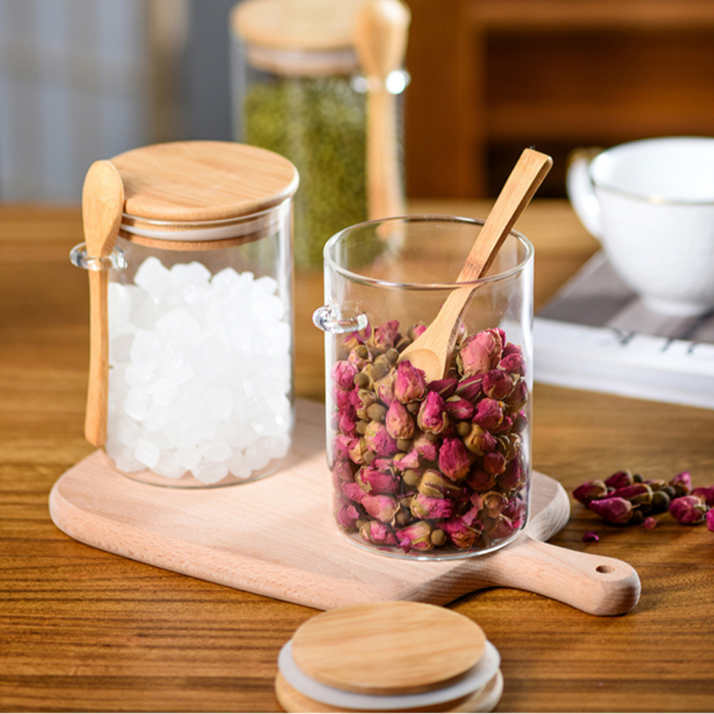 [UNIDADE - LEIA A DESCRIÇÃO] Pote porta tempero ou porta ervas em vidro com borossilicato e tampa de bamboo com colher de bamboo 500ml unidade