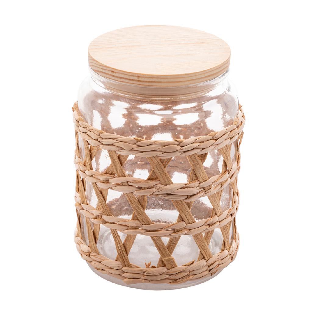 Pote Porta Mantimentos Wolff de Vidro Borossilicato e Sisal com Tampa em Madeira 750ml