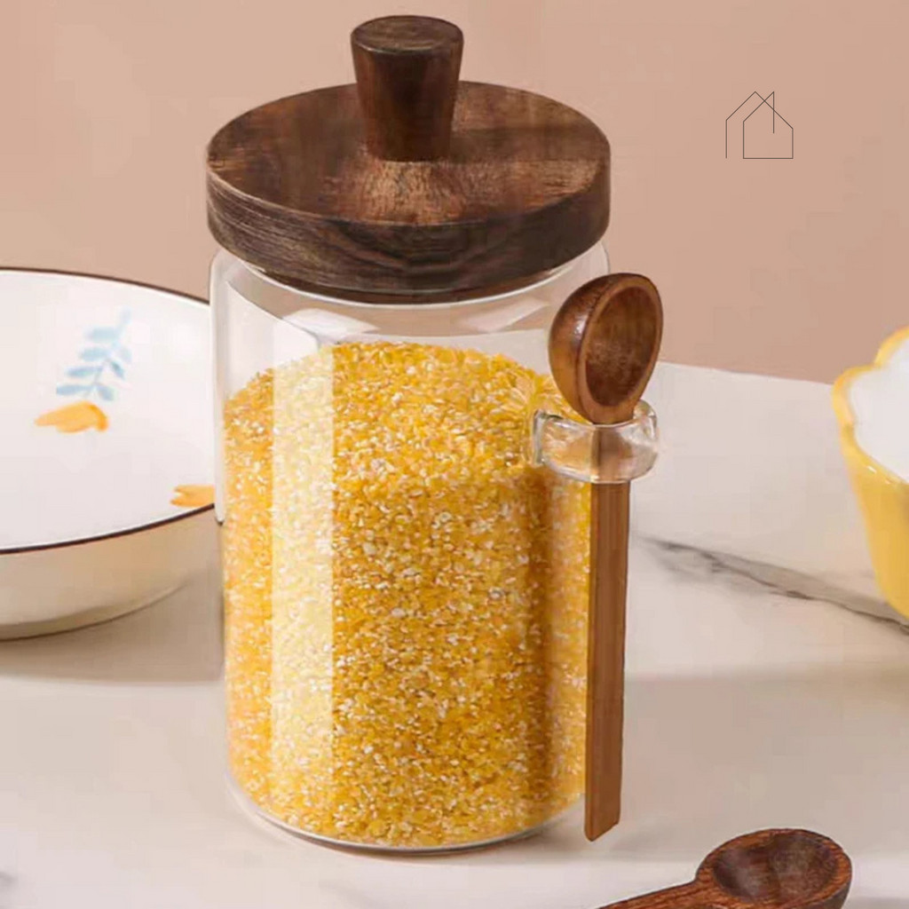 Porta Mantimento 800ml Taiga em vidro borossilicato com tampa e colher em madeira Pote Alimento