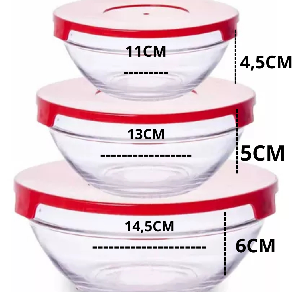 kit 3 pote de vidro tigela hermético com tampa potes redondo vidros bowls de 200-300 e 400ML