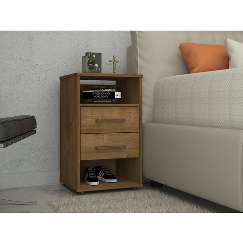 Mesa de cabeceira 2 gavetas com 2 nichos cor madeirado quarto luxo