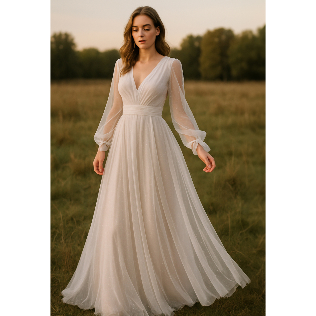 Vestido longo de noiva casamento civil, em tule Ox030