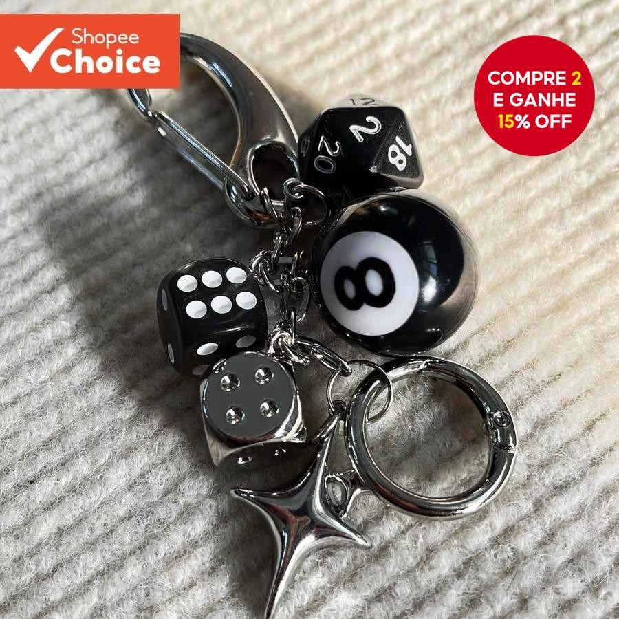 [Pingente] Xiaohongshu O mesmo tipo de corda de dados preto 8 feito à mão como uma bolsa de pingente de moda chaveiro de