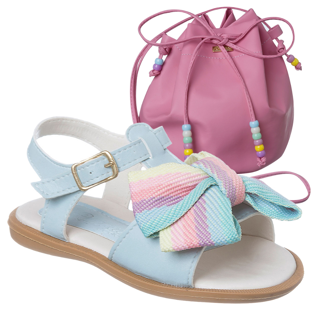 Kit Sandalia Feminina Sandalinha Infantil Com Bolsa Saco Linda Menina Confortavel Promoção