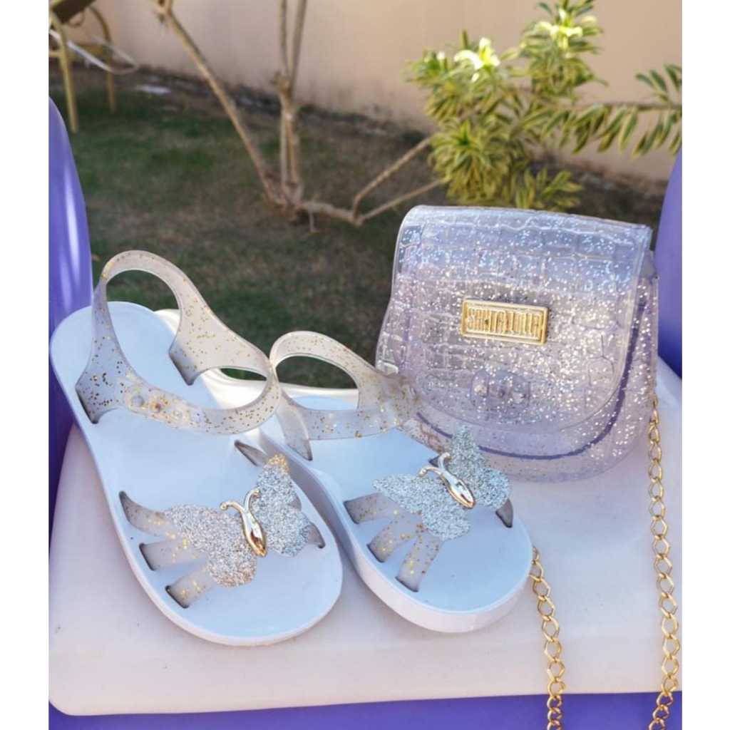 Papete Infantil Menina Chinelo Sandalia Birken Blogueirinha Brilho + Bolsa