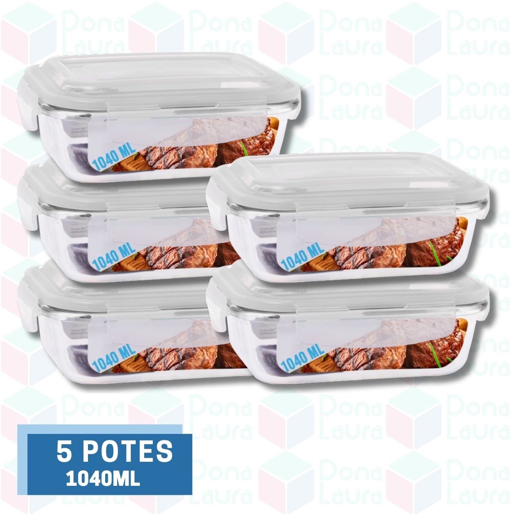 Jogo 5 Pote de Vidro Hermético Marmita Tampa 4 Travas 1040ml